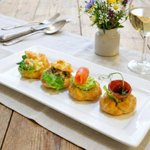 ассорти брускетт, ассорти профитролей, волованы, ассорти тарталеток, пирожное «Наполеон», трайфлы с вишней и с соленой карамелью
